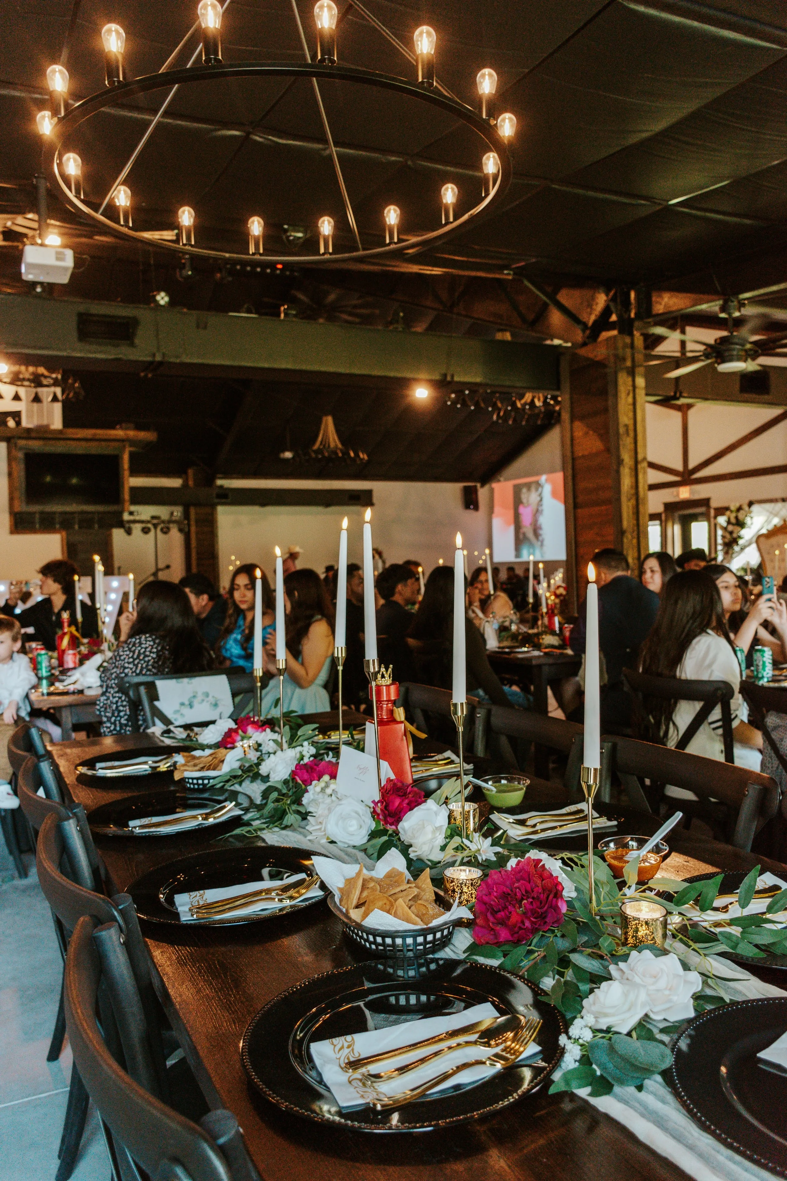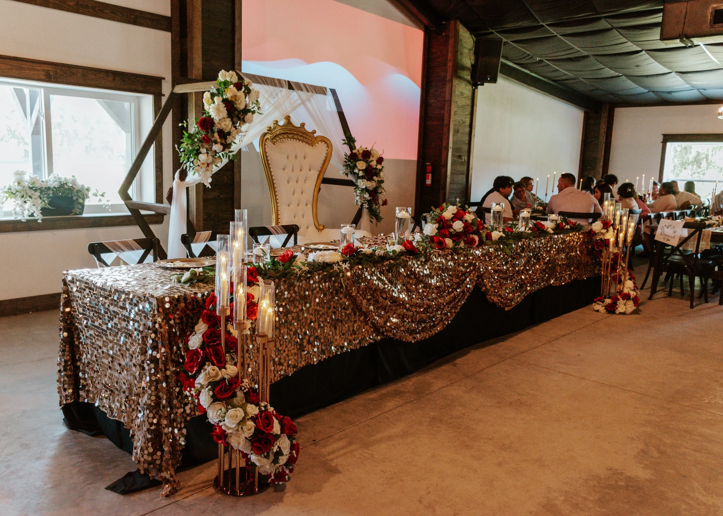 • Fully decorated reception space with tables, chairs, (disposable) dinnerware & centerpieces • Customizable décor from our in-house collection